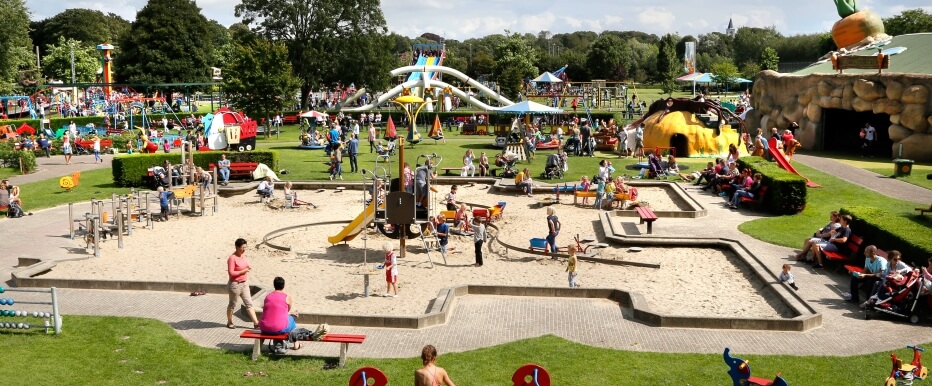 Die große Vielfalt an Spielgeräten ist in Spielzonen für Klein und Groß aufgeteilt. So gibt es einen geschützten Kleinkinder-Spielplatz wo Kinder aus Kindergarten und Vorschule nach Herzenslust auf den vielen Schaukel-, Dreh- und Klettergeräten spielen können. Neben einem großen Sandspielplatz gibt es auch ein lehrreiches Verkehrsdorf und eine Hüpfburg in der Form eines echten Schlosses. Für die allerkleinsten gibt es Dreumesland: eine sichere Spielumgebung mit Minispielgeräten.